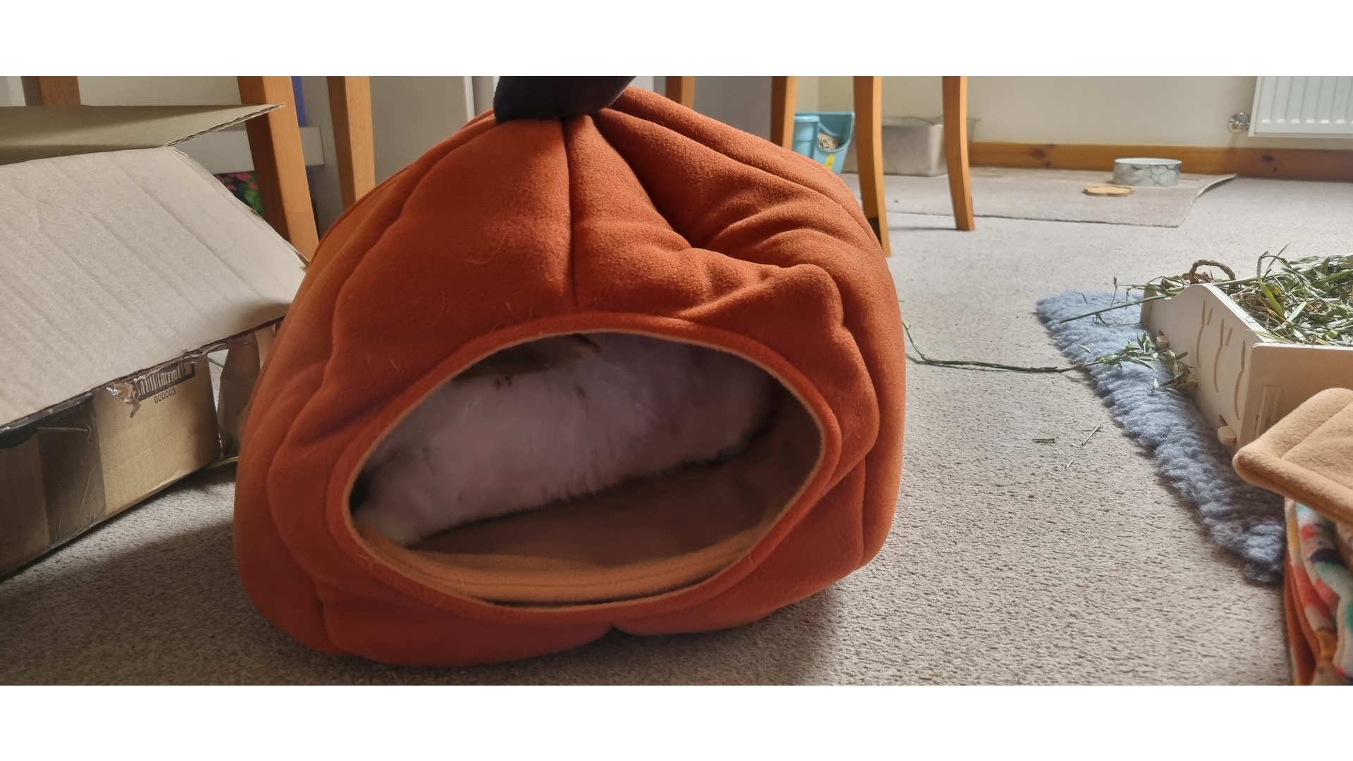"We absolutely LOVE our pumpkin! There is enough room to go in and stretch out, to make sure it's just to our liking! The colours are beautiful and we even got some extra pee pads to go inside just incase one of us wants to claim ownership! It's so soft, the material colour is gorgeous and it just looks so nice in the room! We are very happy it's big enough for us to fit in!" Fuzzy & Milka - 27 September 2025